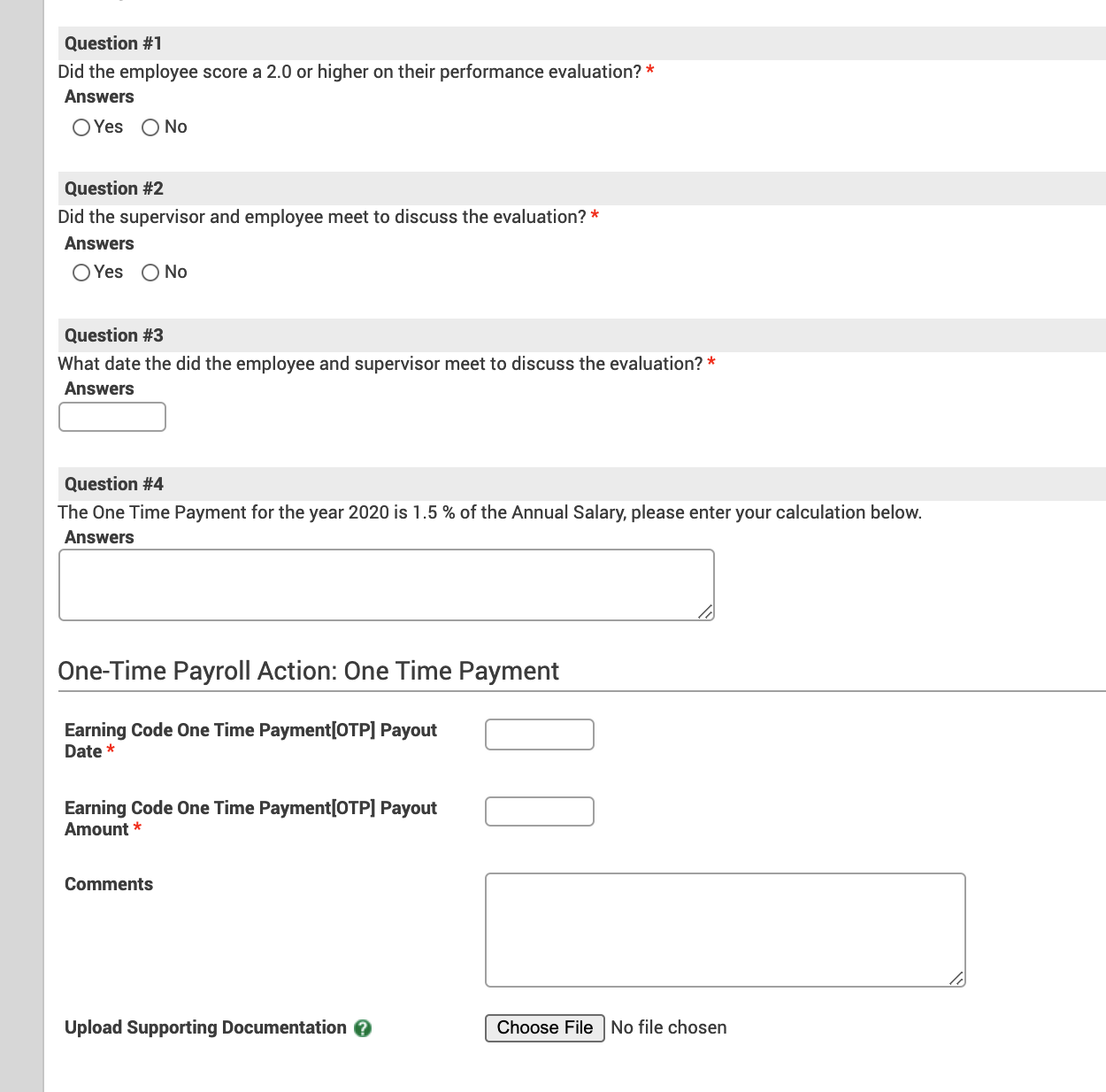 - Ensure OTP amount is supervisor score from the performance evaluation