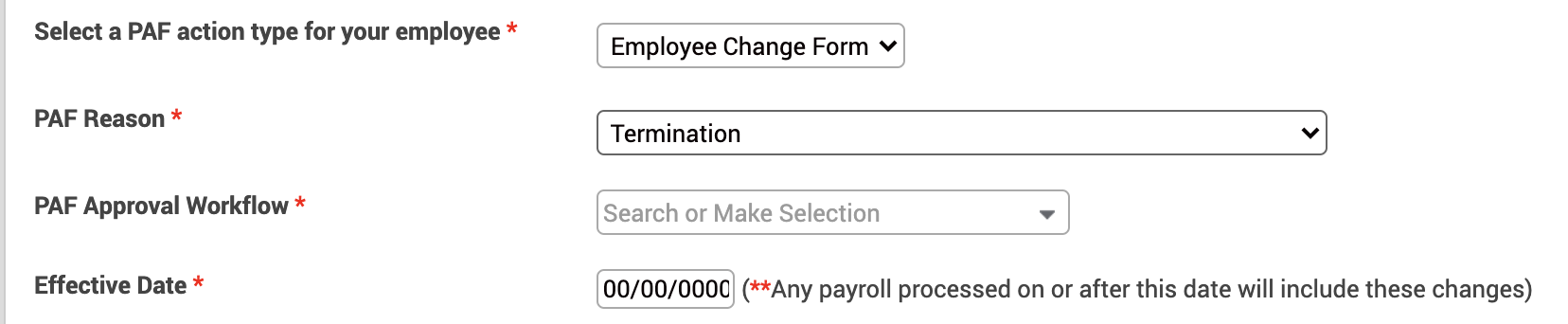 - Select Effective Date: Employees Last Day Worked or leave used.