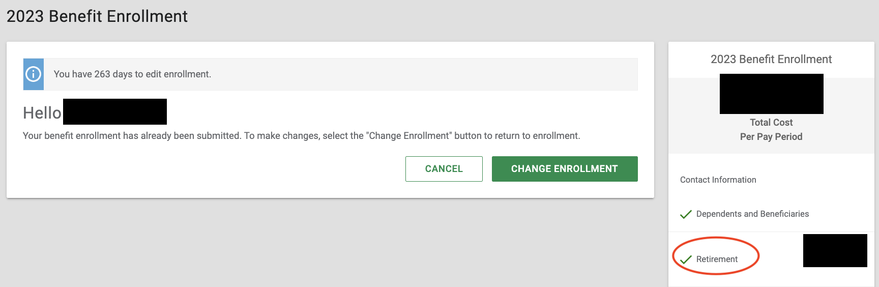 To change your contribution, click the Benefits Tab and then Current Year Benefits Enrollment in the Benefits Box